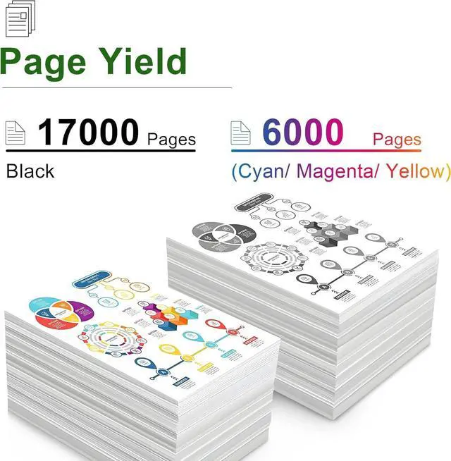 High Page Yield : Black (842091) up to 17,000 pages and each color (842092 - 842093 - 842094) up to 6,000 pages at 5% coverage on A4 paper.