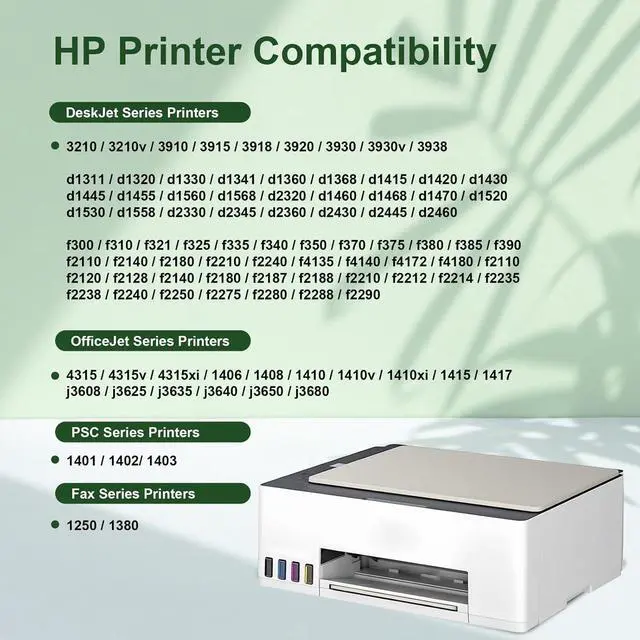 Compatible List: Remanufactured 21 22 ink cartridges compatible for HP Deskjet 3910 3920 3930 3210 D1311 D1320 D1330 D1360 D1420 D1430 D1445 D1460 D1470 D1520 D2320 F2110 F300 F310 F325 F390 F4135 D1368; HP FAX 1250 3180; HP OfficeJet 4315 J3608 J3625 J3635 J3640 J3650 J3680; HP PSC 1401 1410 1415 1417 Printer