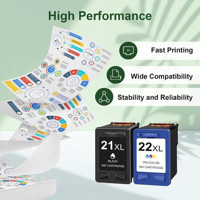 Package includes: Remanufactured 21/22 ink cartridges combo pack compatible for hp 21XL ink cartridges (Not OEM product)