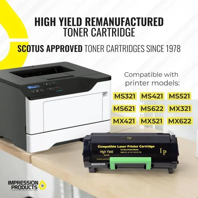 Compatible with Popular Models: Get excellent, clear output from your printer in each of the series options. This cartridge is compatible with: MS/MX 321, 421, 521, 621, 622