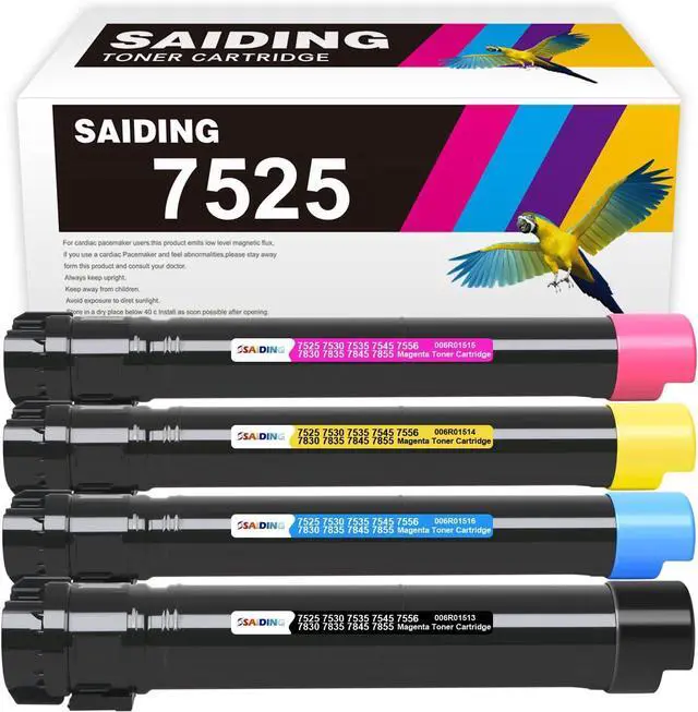 Package Contents: 4-Pack 7525 Black Cyan Yellow Magenta Toner Cartridge