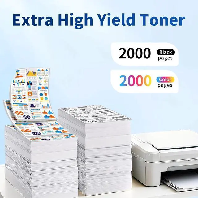 High Page Yield: Up to 2,000 pages per Black & 2,000 pages per Color Toner Cartridge (at 5% coverage, Letter/A4)