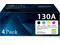 What's in the box: 1x Black (CF350A), 1x Cyan (CF351A), 1 x Magenta (CF353A), 1 x Yellow (CF352A) 4-Packs of 130A standard yield toner cartridges with chips
