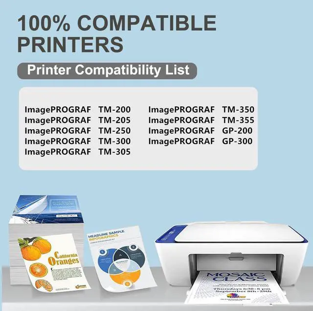 100% Compatible Printer Model 5 Pack PFI-120 Ink Cartridge (with Chip) Replacemet Canon PFI-120 Ink Cartridges are designed to work perfectly with your printer: Replacement for Canon ImagePROGRAF TM-200 TM-205 TM-250 TM-300 TM-305 TM-350 TM-355 GP-200 GP-300 printers