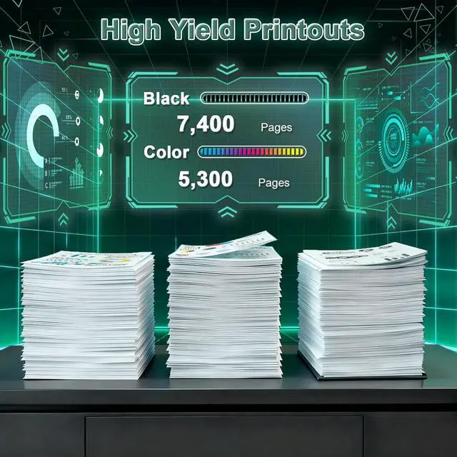 High Page Yield: Get up to 7,400 pages per black toner and 5,300 pages per color toner at 5% coverage on A4-size paper