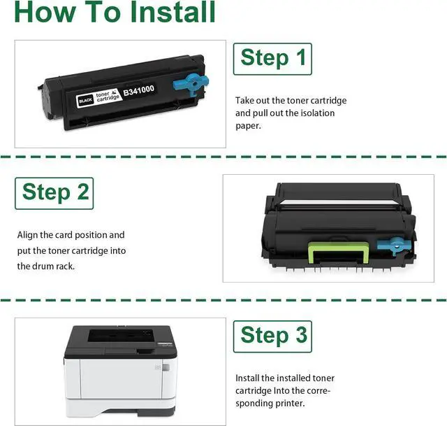 Our tenet: GRATLOV B341000 toner cartridge provides smooth and high print quality for our customers. It is easy to use, clear printing, firm fixation, high Blackness value, and will not damage the machine