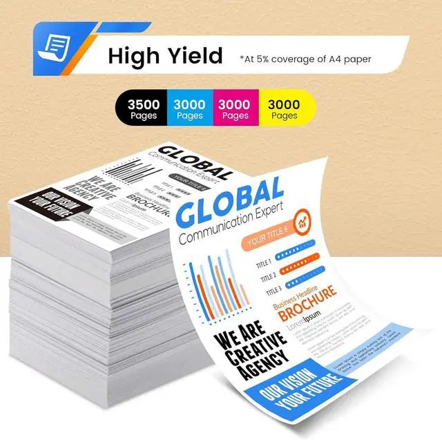 Excellent Performance: Compatible replacements for hp 213A / 213X / 213Y toner cartridges delivers streak-free documents with razor-sharp text and photo-grade color vibrancy.