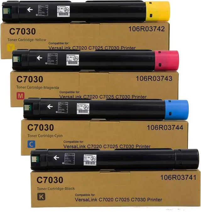 Package Contents:4 Pack C7020/C7025/C7030 Black Cyan Magenta Yellow Toner Cartridges 106R03741 106R03744 106R03743 106R03742
