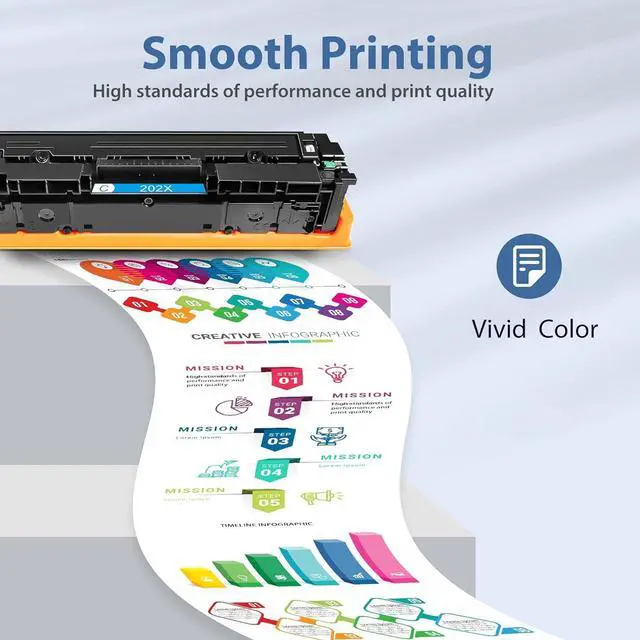 Package Content4 pack replacement for HP 202x toner cartridge set (include 1 x CF500X black toner cartridge, 1 x CF501X cyan toner cartridge, 1 x CF502X yellow toner cartridge, 1 x CF503X magenta toner cartridge).