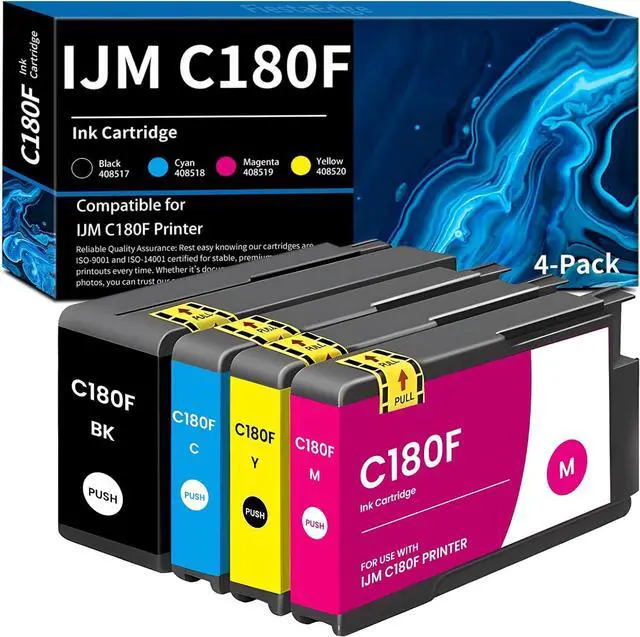 [4-Pack IJM C180F IJMC180F Ink Cartridge Includes]: 408517 black Ink cartridge x 1, 408518 cyan Ink cartridge x 1, 408519 magenta Ink cartridge x 1, 408520 yellow Ink cartridge x 1