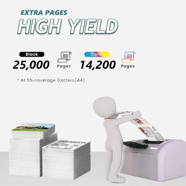 High Yield: Printing 25,000 pages for Lexmark XC4342 24B7518 black replacement toner cartridge & 14,200 pages for 24B7515 cyan/ 24B7516 magenta/ 24B7517 yellow(5% coverage/A4 paper)