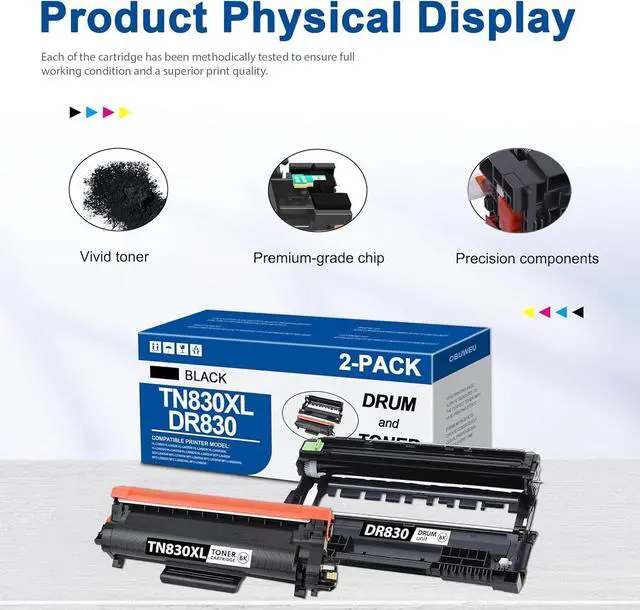 Our Advantag: OBUWEU TN-830XL TN830 toner and DR-830 drum features smart chips that ensure precise toner delivery for maximum print efficiency, Deliver superior printing results with clear prints for your printer