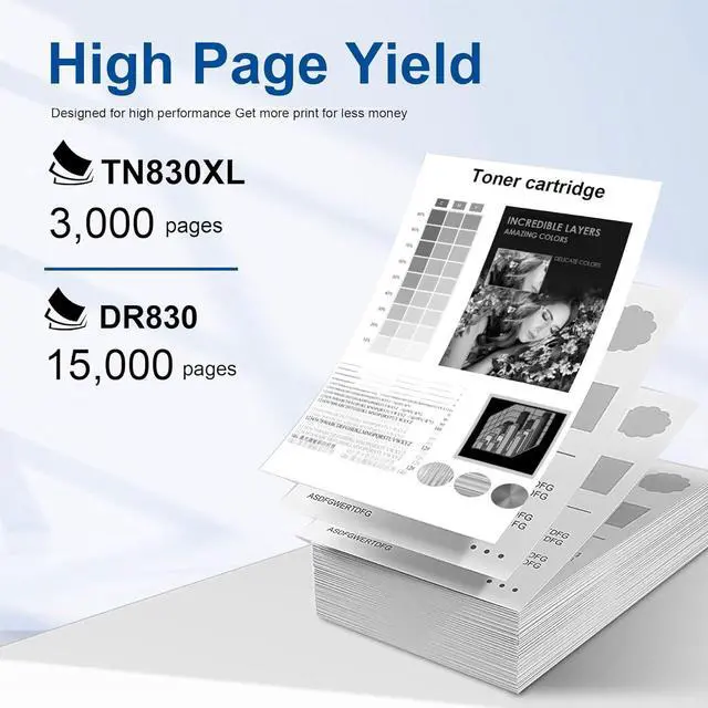 Print Pages: Approx 3,000 pages per TN830XL Toner Cartridge yield and 15,000 pages per DR830 Drum Unit yield Based on 5% coverage