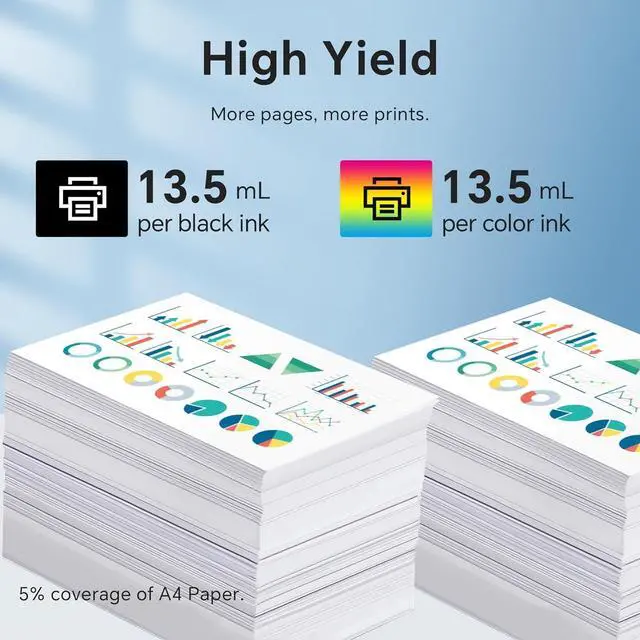 Higher Page Yield: High Capacity: 13.5ML per cli65 cli-65 ink cartridge. (Varies by print coverage, At 5% Coverage of A4 Paper)