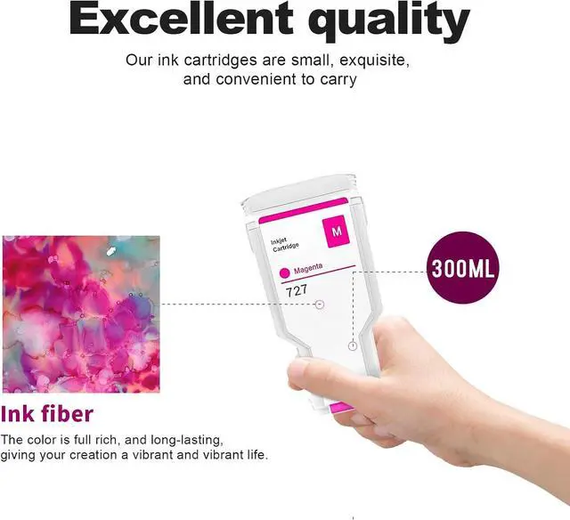 High Capacity: 727 Matte Black Ink Cartridge, 727 Photo Black, 727 Cyan Ink Cartridge, 727 Magenta Ink Cartridge, 727 Yellow Ink Cartridge, 727 Gray Ink Cartridge (Each 300ML)