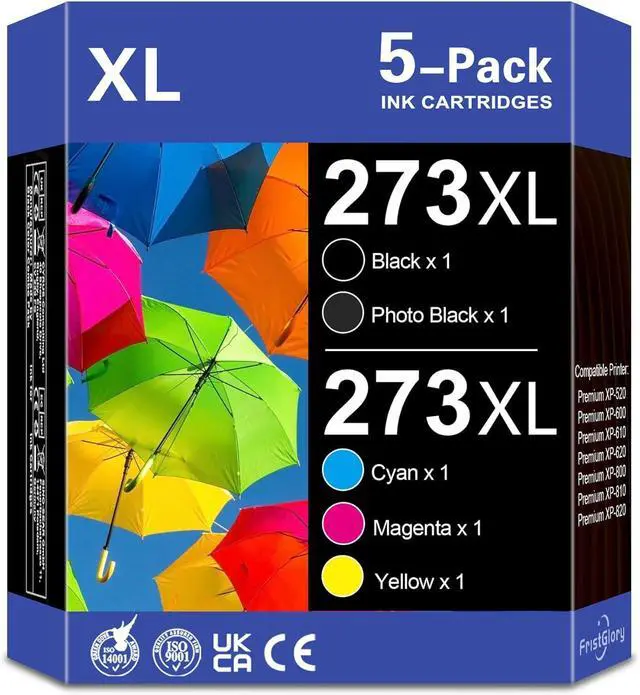 Package Contents: 5 Pack 273XL ink cartridges combo pack include - 1 x 273XL Black ink cartridge, 1 x 273XL Photo Black ink cartridge, 1 x 273XL Cyan ink cartridge, 1 x 273XL Magenta ink cartridge, 1 x 273XL Yellow ink cartridge