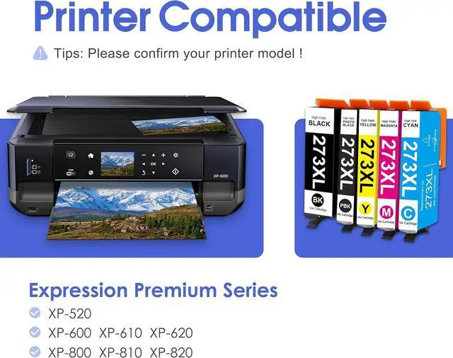 Compatible for Printer Models: This 273 xl ink cartridges compatible for Expression Premium XP-520, XP-600, XP-610, XP-620, XP-800, XP-810, XP-820 printer