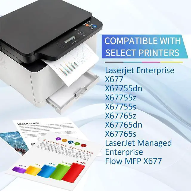 Compatible Printers:W9270MC W9271MC W9273MC W9272MC toner cartridges are specially designed to be compatible Replacement for HP Laserjet Enterprise X677 X67755dn X67755z X67755s X67765z X67765dn X67765s LaserJet Managed Enterprise Flow MFP X677 Printers