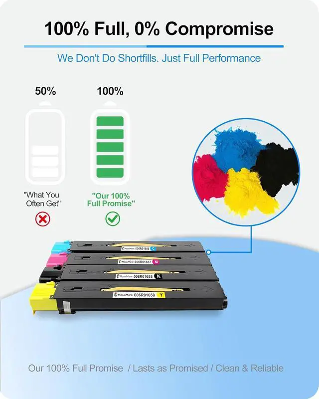 Superior A-Grade Toner Powder: We use only the highest quality, A-Grade toner powder in our cartridges, which delivers vibrant, true-to-life colors and sharp black text while also protecting your printer's internal components.