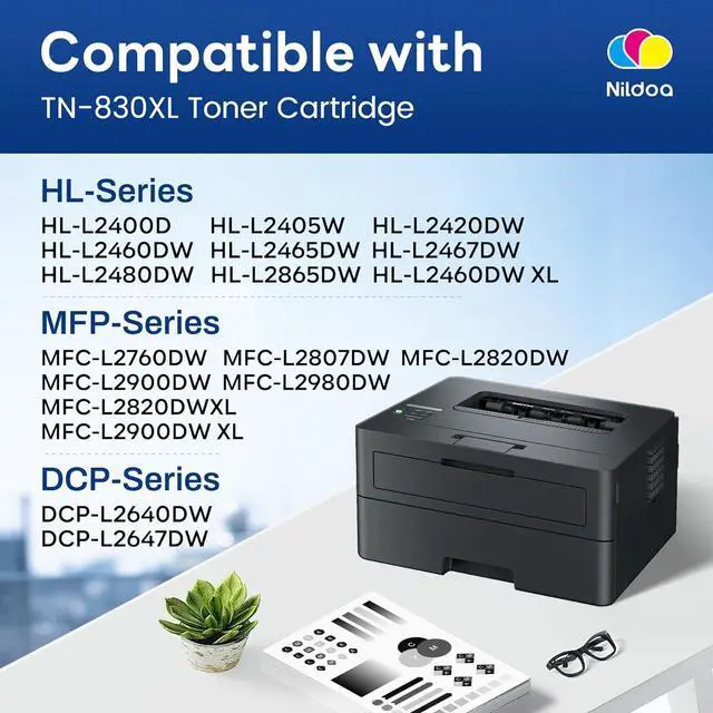 Compatible Printer Models: Compatible with Brother HL-L2400D, HL-L2405W, HL-L2420DW, HL-L2460DW, HL-L2460DW XL, HL-L2465DW, HL-L2467DW, HL-L2480DW, HL-L2865DW, DCP-L2640DW, DCP-L2647DW, MFC-L2760DW, MFC-L2807DW, MFC-L2820DW, MFC-L2820DWXL, MFC-L2900DW, MFC-L2900DW XL, MFC-L2980DW