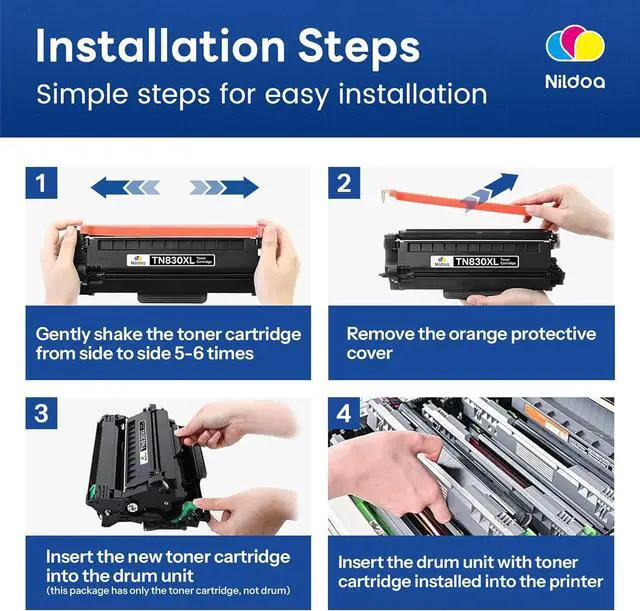 Package Contents: Nildoa 4 Pack TN830XL Toner Cartridge Replacement for Brother TN830XL TN-830XL Toner Cartridge High Yield