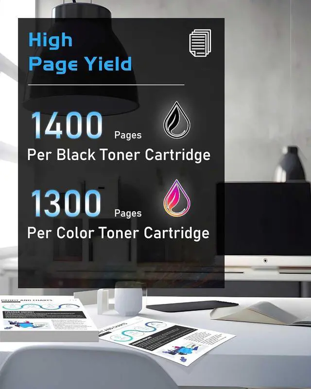 Page Yield: Up to 1,400 pages per black and 1,300 pages per color cartridge based on 5% printing coverage