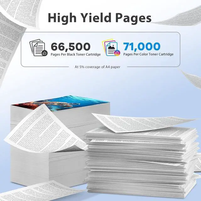 High Pages Capacity: Up to 66,500 pages per Black, 71,000 Pages per Color
