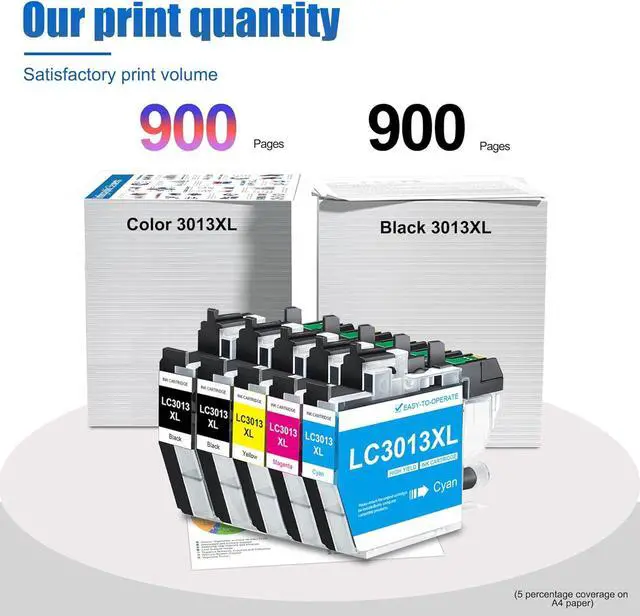 High Pages Yields: 900 pages per LC3013XL Black ink cartridge, 900 pages per LC3013XL Color ink cartridge (based at 5% coverage)