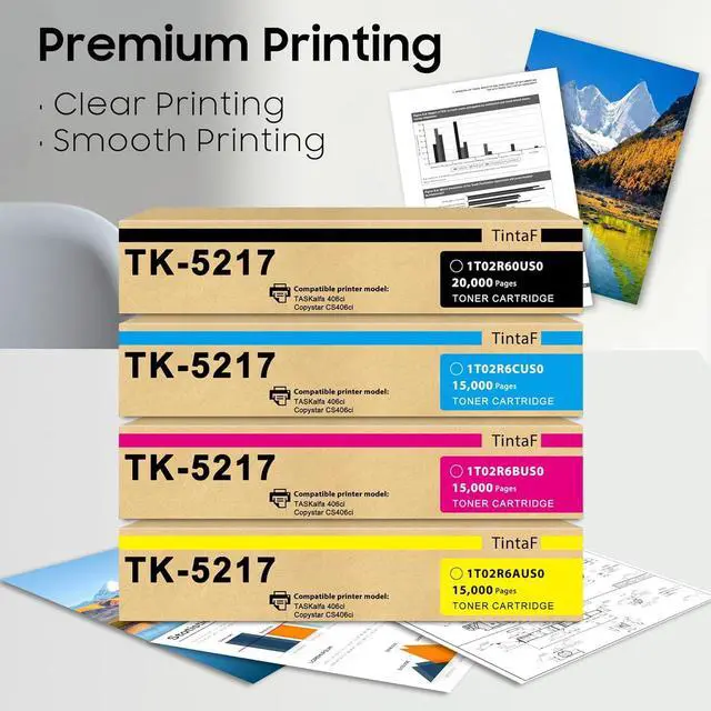 Product Name: TintaF TK-5217 TK5217 Toner Cartridge 4-Pack (Black,Cyan,Magenta,Yellow) Replacement for Kyocera TK5217K TK5217C TK5217M TK5217Y Toner Cartridge 1T02R60US0 1T02R6CUS0 1T02R6BUS0 1T02R6AUS0