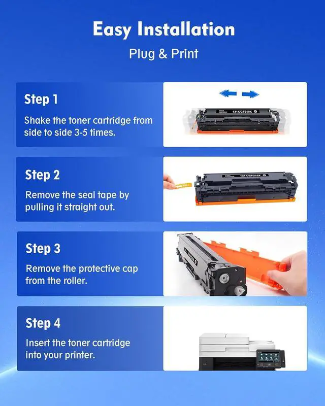 Include: 4 packs 131A 131X toner compatible with HP 131A 131X CF210X CF210A CF211A CF212A CF213A toner cartridge