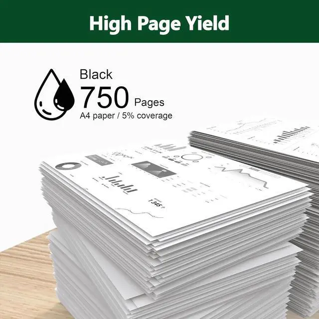 Page production advantage: Each 902XL black ink cartridge can print up to 750 pages. (5% coverage test shows that compared to other products, ink waste is reduced by 50%)