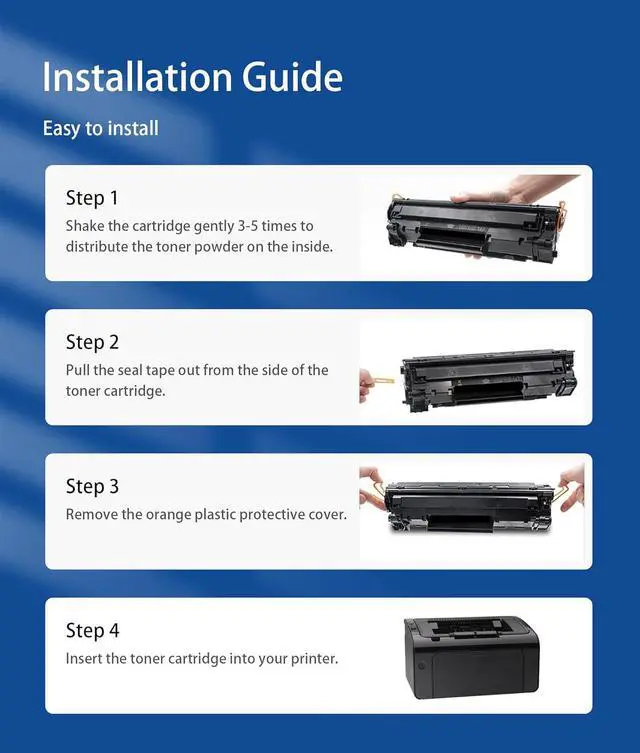 Compatible Printer: The 85A toner is compatible with LaserJet Pro P1102w P1109w LaserJet Pro MFP M1212nf M1217nfw Printer