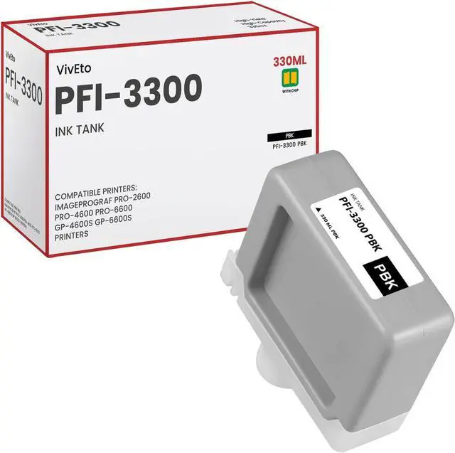 Contents: VivEto PFI3300 PBK ink replacement for Canon PFI 3300 Photo Black pigment ink tank kit(6433C001AA)
