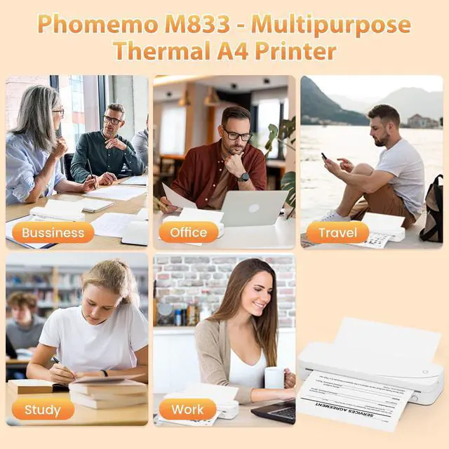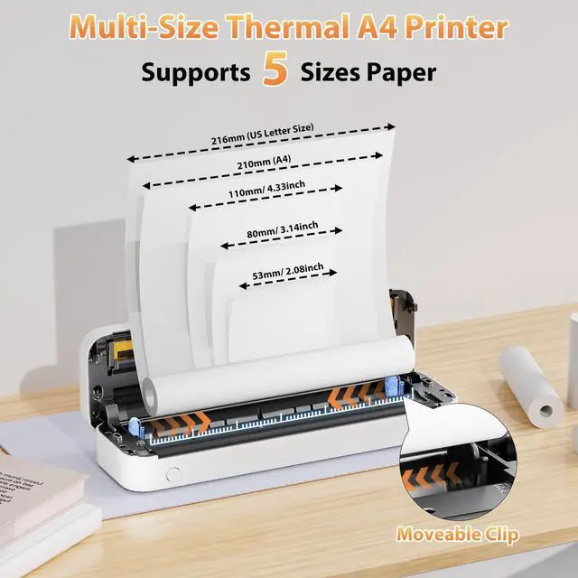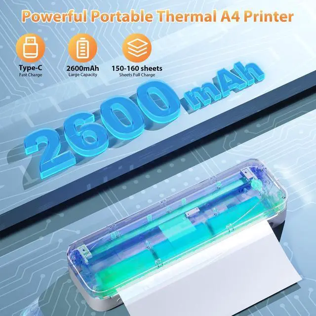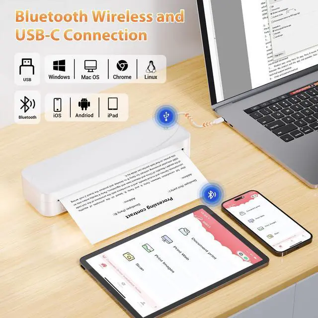 Inkless Portable Thermal Printer This wireless printer using direct thermal technology, instantly producing sharp prints on included US Letter/A4 thermal paper (10 sheets provided). Designed for home, office, or travel, it skips messy ink costs and maintenance. Compact and ready to use, it reliably handles documents, labels, lists, and more, but note: standard copy paper is not compatible.