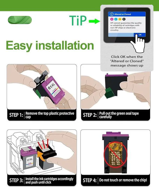 Latest Chip Version: Every 61 XL ink cartridge comes with the most up-to-date chip, ensuring compatibility with all listed printers,Its design is stable and reliable, capable of precisely monitoring ink volume, accurately identifying and enabling plug-and-play functionality.