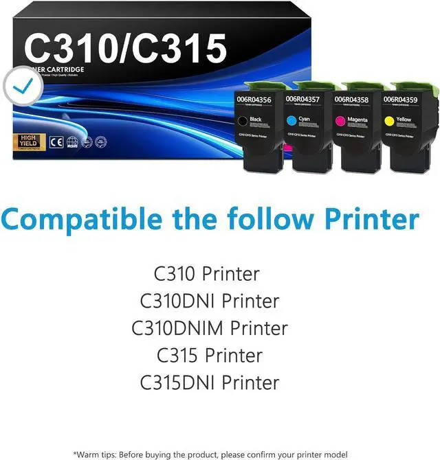 Printer Compatibility: C310 C315 Toner Cartridges Compatible for Xerox C310 C310DNI C310DNIM C315 C315DNI Printers