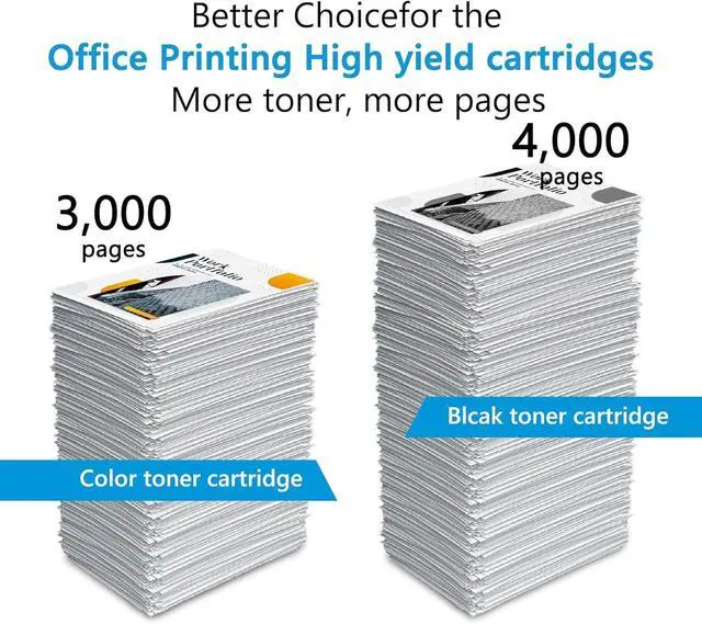 Page yield: Black is 4,000 pages per Toner Cartridge and Color is 3,000 Pages per Toner Cartridge at 5% coverage