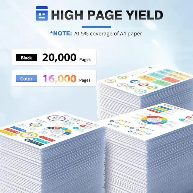 Page Yield: 20,000 Pages for 982X T0B30A Black & 16,000 Pages for 982X T0B27A Cyan T0B28A Magenta T0B29A Yellow at 5% coverage ( A4 /letter paper size )