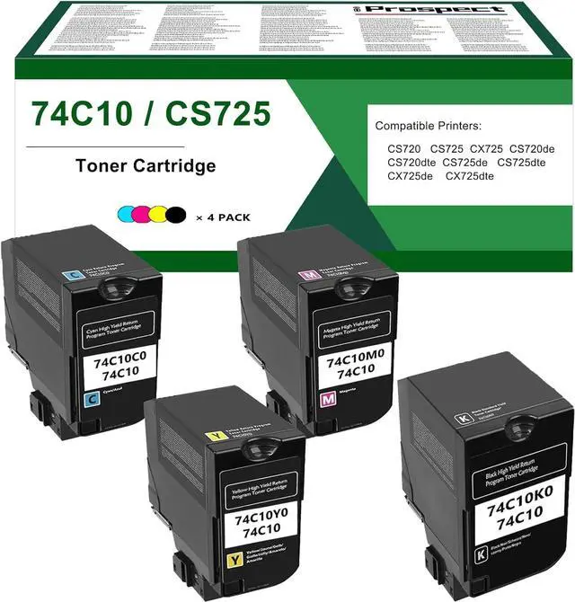 Package Contents: The package includes 4 packs of toner cartridges with 74C10K0 black 74C10C0 cyan 74C10M0 magenta and 74C10Y0 yellow toner.