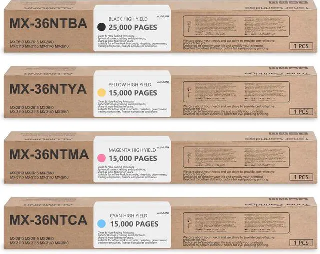 Package Contents: 4 pack MX-36NT (MX-36NTBA , MX-36NTCA , MX-36NTMA , MX-36NTYA ) toner cartridge