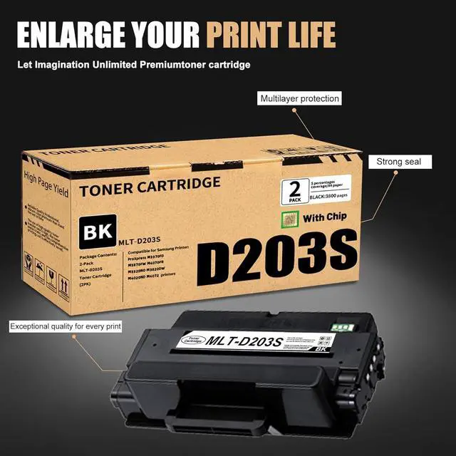 MLT-D203S (SU911A) Toner Cartridges are of high-quality, reliable printing and save time by avoiding common printing problems, a replacement or refund is available for any usage issue.