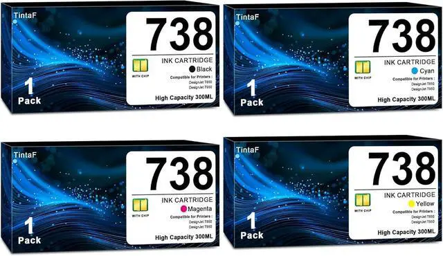 Product Name: TintaF 728 ink (With Chip) compatible for HP 728 ink cartridges 4 pack included - 1x Matte Black(F9J68A), 1x Cyan (F9K17A), 1x Magenta (F9K16A), 1x Yellow (F9K15A)