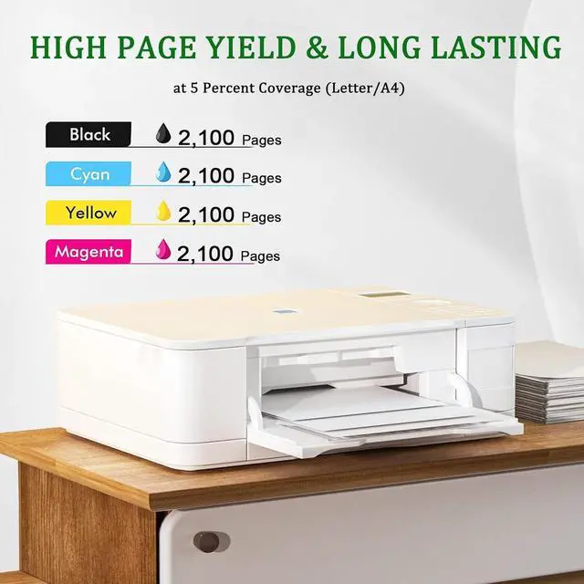 Printed Pages:Up to 2,100 pages per black cartridge and 2,100 pages per color cartridge.(With 5% coverage on A4 paper)