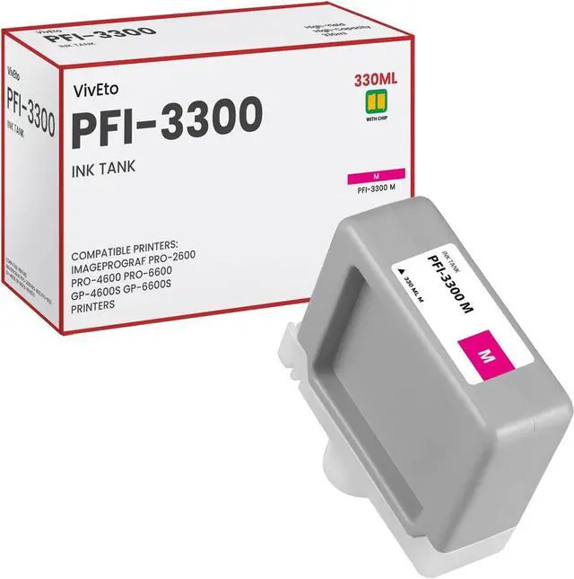 Contents: VivEto PFI3300 M ink replacement for Canon PFI 3300 Magenta pigment ink tank kit(6435C001AA)