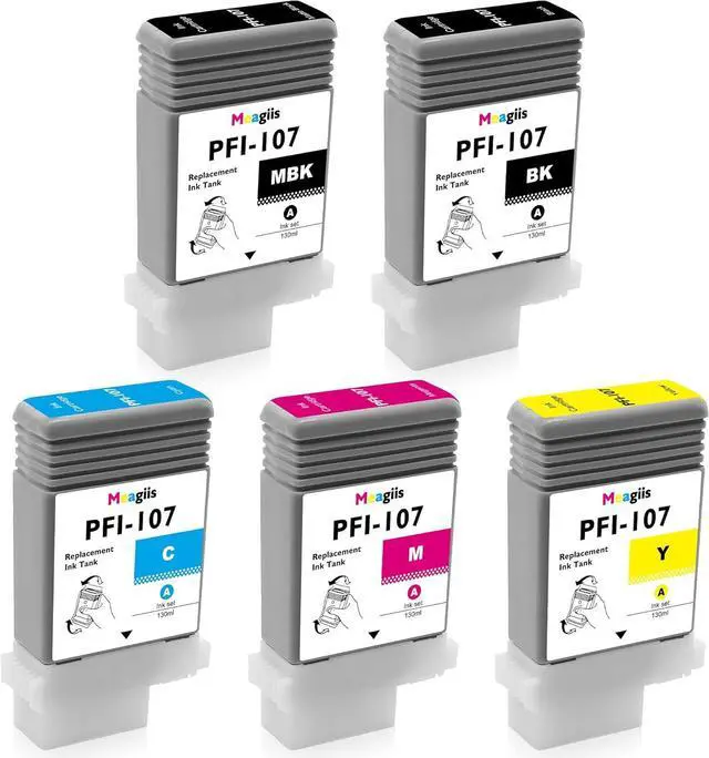 Package Contents: 5 Pack PFI-107 Ink Cartridges (Matte Black, Black, Cyan, Magenta, Yellow)