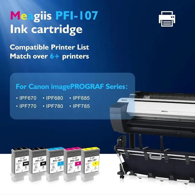 Applicable Models: Fully compatible for Canon PFI107 Ink Cartridges Use for Canon imagePROGRAF iPF670 iPF680 iPF685 iPF770 iPF780 iPF785 Series Printer