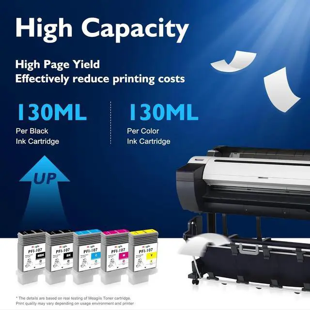 High Capacity: 130ml per PFI107 Ink Tank, 650ml in total