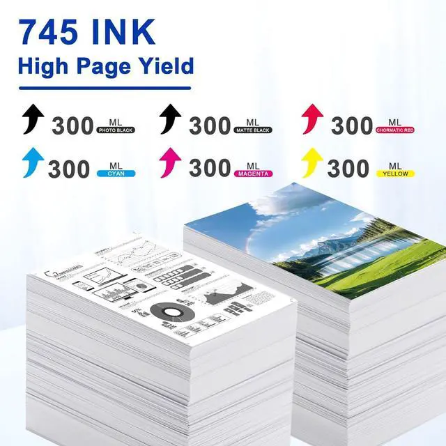 High Ink Capacity : 745XL ink cartridges up to 300-ml per 745 ink cartridge