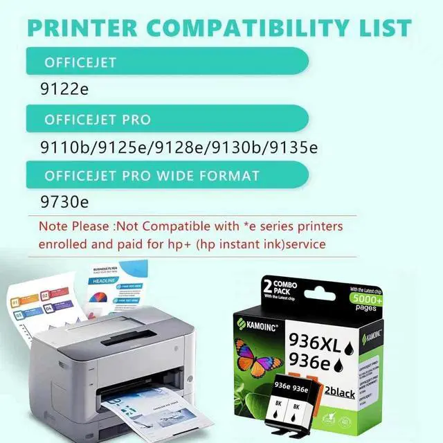 Easy to Install and UseEach KAMOINC 936e 936XL black ink cartridge undergoes a strict quality testing procedure to ensure compatibility with your printer