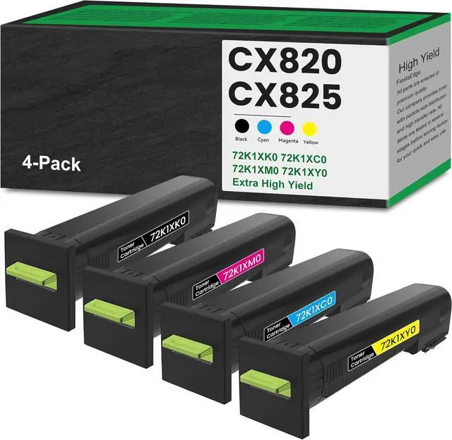 [4-Pack CX820 CX825 Cartridge Includes] - 72K1XK0 black toner cartridge x 1, 72K1XC0 cyan toner cartridge x 1, 72K1XM0 magenta toner cartridge x 1, 72K1XY0 yellow toner cartridge x 1